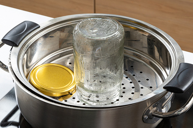 Тщательно простерилизуйте банки над паром в течение 15–20 минут. Не пытайтесь их просто обдать кипятком — есть шанс, что при такой обработке варенье долго не простоит.