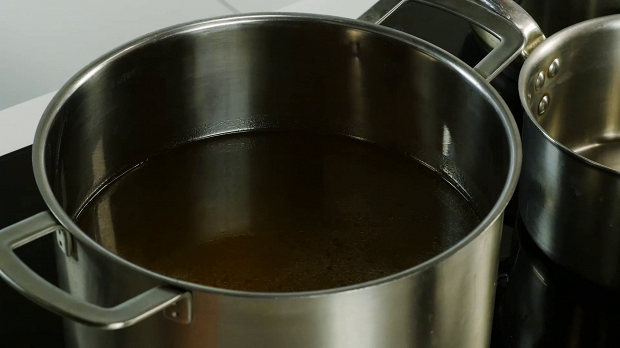 Сварите мясной бульон. Возьмите хороший кусок мяса на кости, весом около 1,5 кг, варите до закипания в 5,2 л воды. Киньте в бульон коренья — морковь, лук, чеснок, стебли петрушки. Убавьте огонь, и пусть бульон медленно кипит полтора часа. Готовность бульона определяется также и по мясу: оно должно быть сварено, съедобно, мягко. Когда все сварится, процедите бульон.
