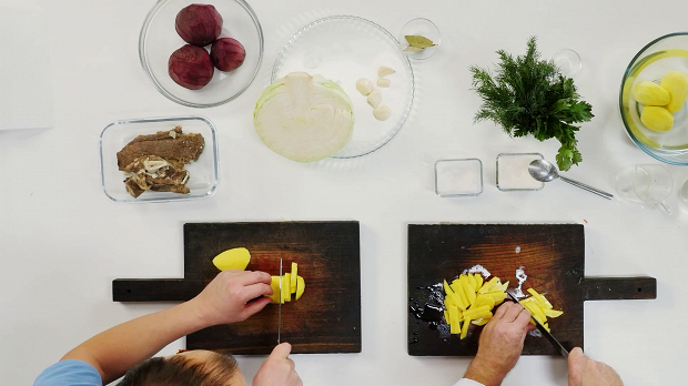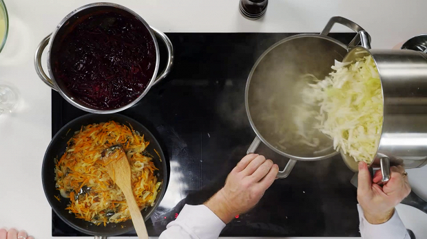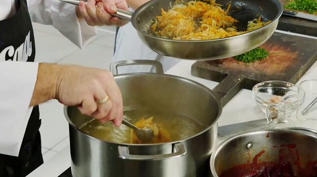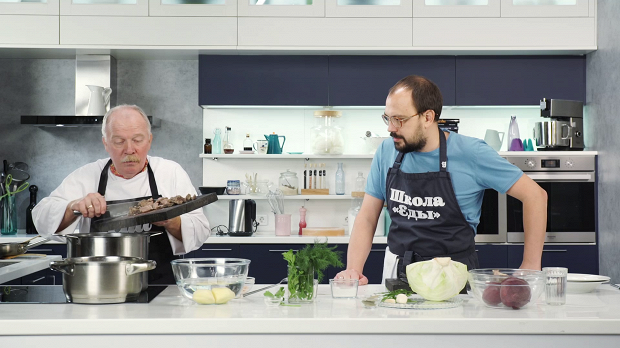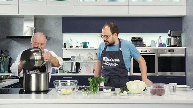 Мы решили сделать мастер-класс, в котором Александр Васильевич Попов, шеф ресторана «Волна», рассказал нам об основных принципах приготовления этого семейства супов — на примере борща московского. Приготовлен он был с небольшим отступлением от канонического рецепта: московский борщ обычно делают без картофеля.