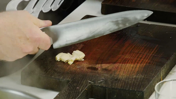 Возьмите два-три зубчика чеснока и мелко-мелко их нарубите.