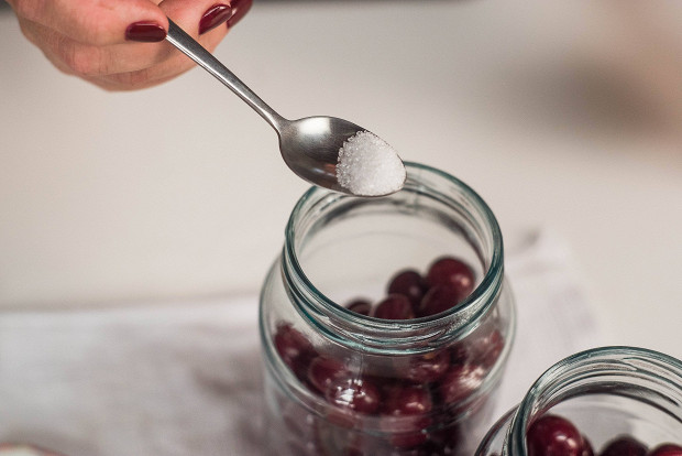 В банки надо засыпать лимонную кислоту, по 1/3 чайной ложки на литровую банку. В трехлитровую банку я добавляю ложку. Во-первых, вкус у компота получается приятным, кисло-сладким. Во-вторых, лимонная кислота в банке — это стопроцентная гарантия, что компот не испортится. Сейчас модно закрывать варенья и компоты с апельсином, так это почти то же самое.