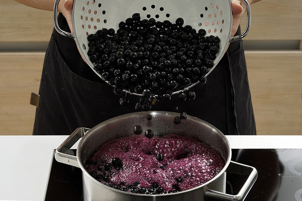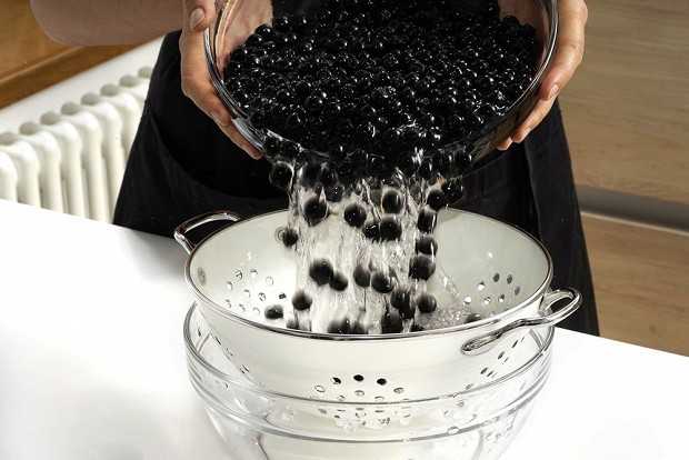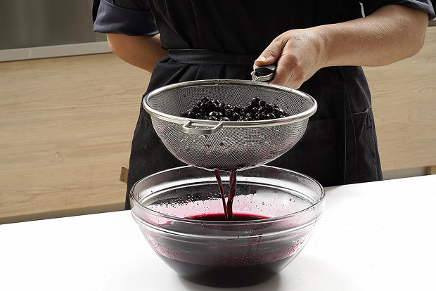 Ягоды откиньте на дуршлаг, дайте стечь жидкости.