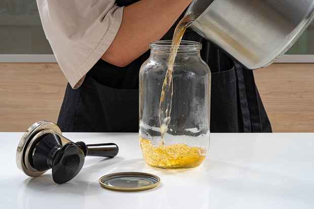 Простерилизуйте банки или стеклянные бутылки над паром в течение 15–20 минут.