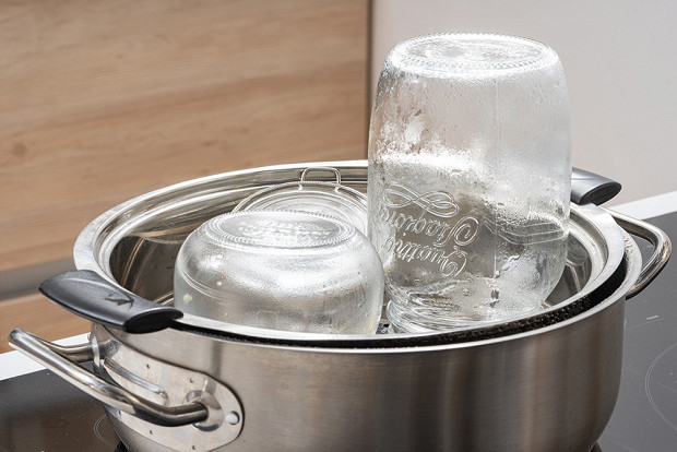 Стерилизуйте банки и крышки над паром в течение 15–20 минут.