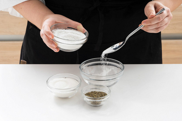 Перемешайте в миске 1 столовую ложку сахара, 2 столовую ложку соли и 0,5 столовых ложки прованских трав. Вы можете взять любые травы, какие любите, но помните, что их аромат не должен убивать свежий запах малосольной рыбы, и должен соответствовать жанру. Например, тмин или кориандр будут настойчиво напоминать о бородинском хлебе, бадьян — о Востоке. А это уже совсем другая история.