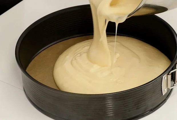 Положить желтки и разрыхлитель, продолжить взбивать, постепенно добавляя муку. Тесто должно получиться консистенции густой сметаны.