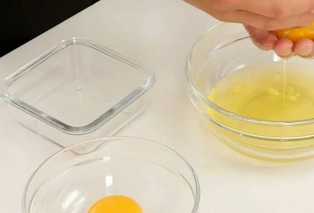 Отделить белки от желтков — если сноровки не хватает, лучше всего отделять очередной белок не в общую, а в отдельную миску. Так, даже если в него попадет желток, это будет легко исправить.