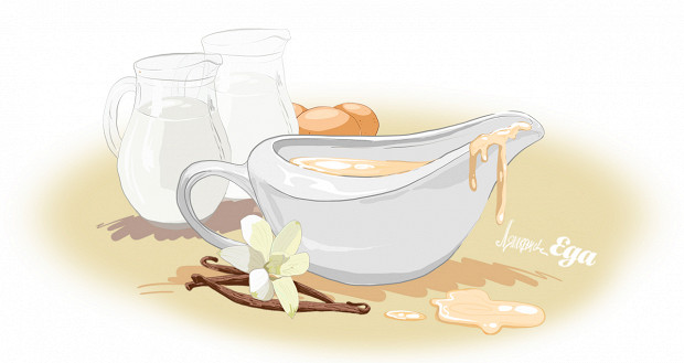 Для сливочного соуса нужны очень свежие молоко и сливки. Возьмите 600 мл молока жирностью 3,2% или 300 мл молока и 300 мл сливок (так будет вкуснее), 100 г сахара, 15 г крахмала, два желтка, 15 г сливочного масла, стручок ванили (или ванильный ароматизатор).