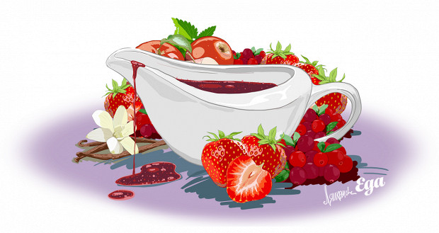 Экспериментировать с ягодными соусами можно бесконечно. Можно брать смесь из разных лесных ягод. Можно делать из экзотических фруктов — например, классическое сочетание манго с маракуйей — одно из моих любимых. Клюква, апельсин и пряности — теплое сочетание, которое хорошо осенью и зимой. Ягодные соусы в сезон — проще простого: пошла клубника, смородина, малина — пробейте их в блендере, протрите через сито, чтобы удалить косточки, и соус готов (можно разве что добавить немного сахара; хранится такой свежий соус в холодильнике дня два).