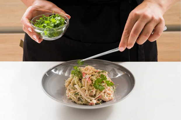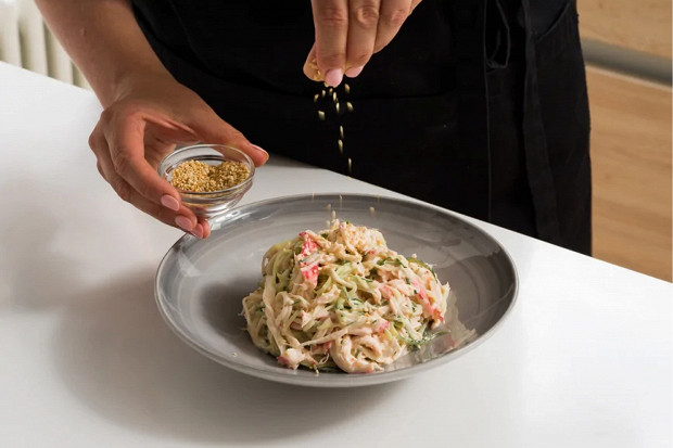 Крабовый салат с огурцами и дайконом