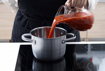 Вылейте 1,5 литра томатного сока в кастрюлю.