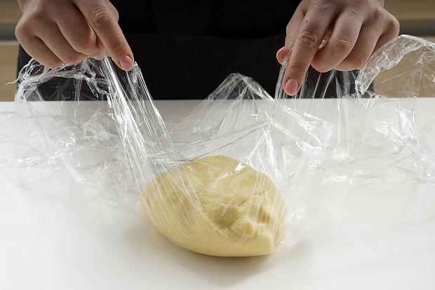 Сформируйте из теста шар, заверните его в пленку. Уберите в холодильник на 40 минут.