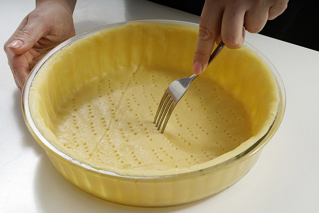 Разогрейте духовку до 180 градусов. Наколите тесто вилкой по всей площади.