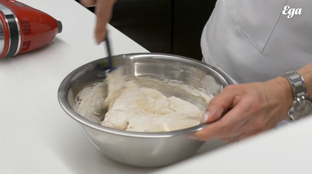 Теперь добавьте масло виноградной косточки. У него не яркий аромат, но оно придает тесту эластичность, которая ему необходима. Снова перемешайте тесто.