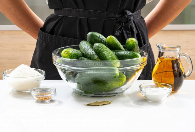 Первый — зерна горчицы, они придают огурцам искомую хрусткость, особый аромат и легкую остроту, к тому же они — естественный консервант, с ними заготовка будет лучше и дольше храниться. Второй — яблочный уксус. Если обычный столовый уксус доминирует в маринаде, забивая собой все вокруг, то яблочный — не такой навязчивый, консервы с ним получаются более деликатными, без бьющего в нос уксусного духа и резкого привкуса.