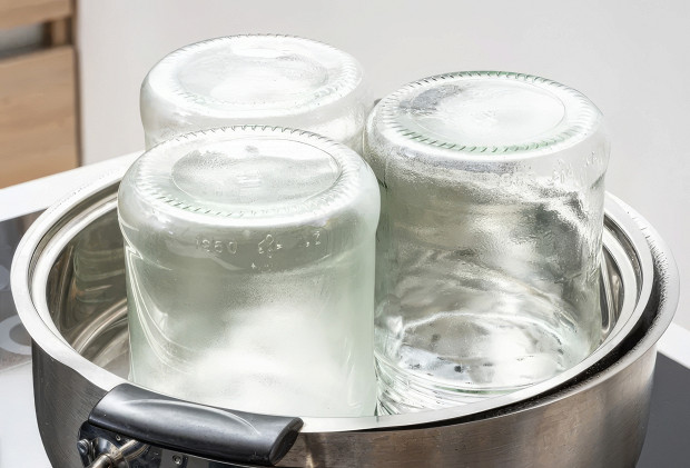 Стерилизуйте банки и крышки над паром в течение 20 минут.