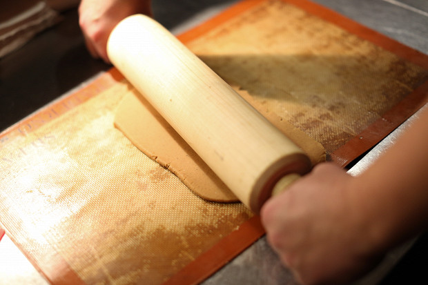 Когда вы соберетесь печь печенье, достаньте тесто из холодильника, разрежьте на части и раскатайте скалкой в пласты толщиной около 3–4 мм (но вообще толщина — дело личное, тут как кому нравится).