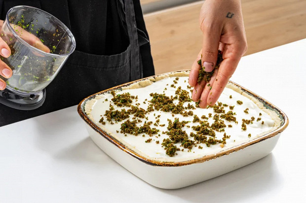 Распределите тесто по форме и отправьте в духовку на 15 минут.