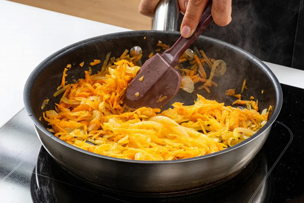 Добавьте на сковороду морковь, обжарьте вместе с луком.