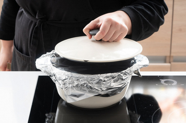 Уберите фольгу, снимите плов с огня и дайте ему пропариться под крышкой еще 10 минут.