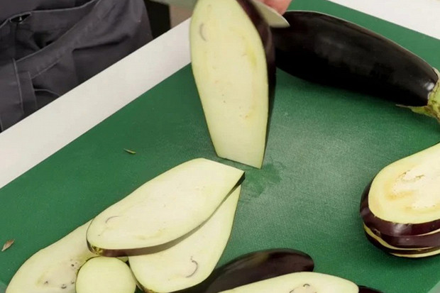 - Выбирайте крупные и плотные баклажаны, их можно нарезать широкими полосками, из которых очень удобно сворачивать рулеты.