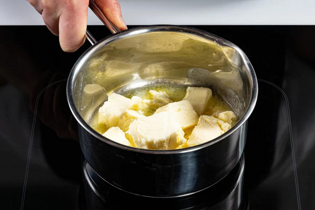 Для приготовления начинки растопите оставшееся сливочное масло и дайте ему немного остыть.