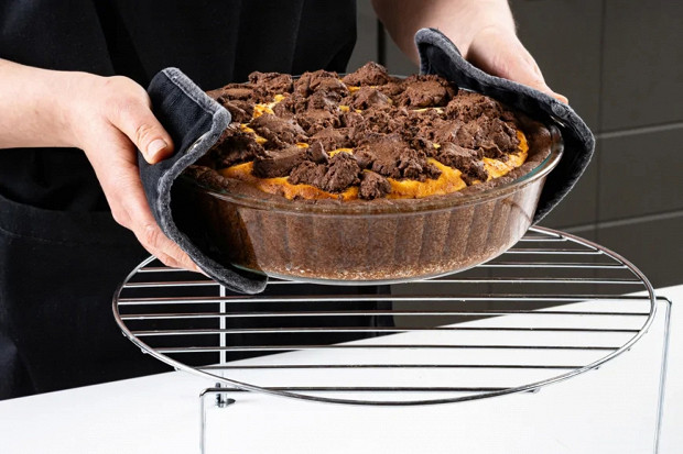 Отправьте пирог в уже разогретую духовку на 60–65 минут, а затем дайте ему полностью остыть на решетке.