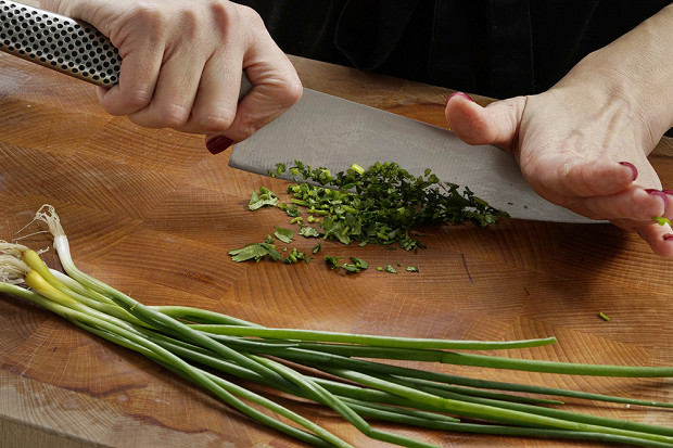 Всю зелень мелко порубите.