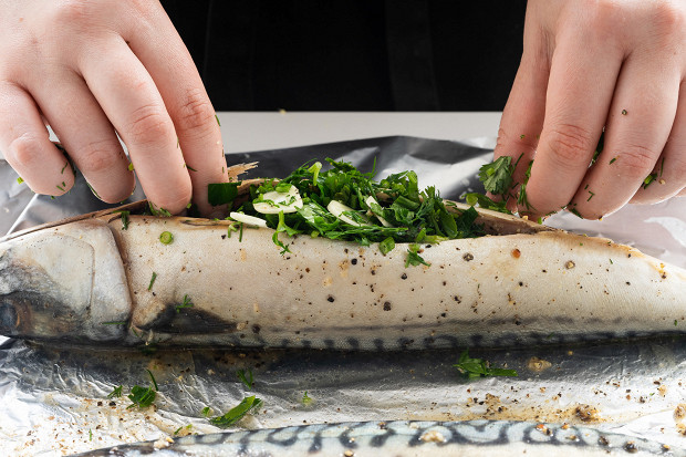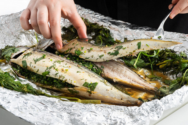 Скумбрия с зеленью в духовке