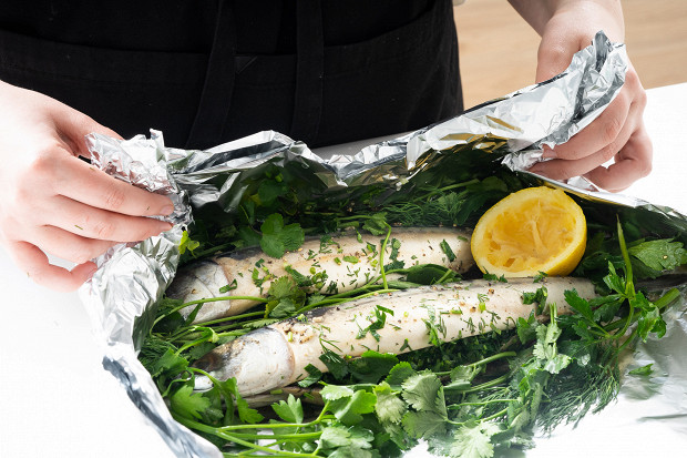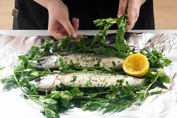 Аккуратно запеленайте рыбу в фольгу и отправьте в разогретую до 180 градусов духовку на 25–30 минут.