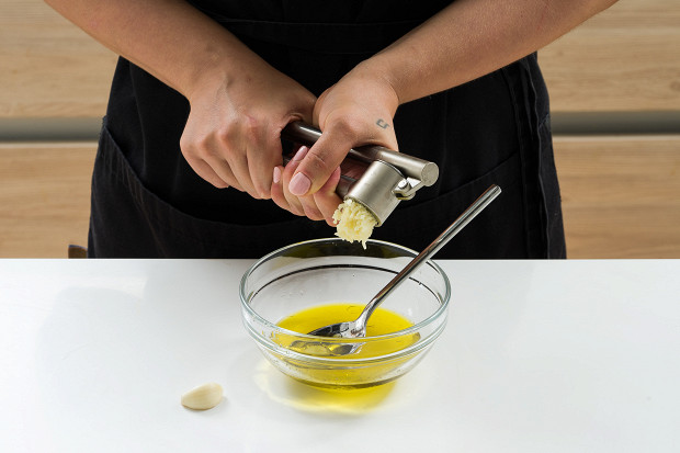 Добавьте к этой ароматной гуще 3 зубчика чеснока, пропущенные через пресс.