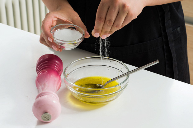 Соедините в миске свежевыжатый сок 1 лимона и 4 столовых ложки хорошего оливкового масла. В этом маринаде рыбе предстоит провести всего 20 минут, но зато ее активный запах смягчится до нежного, лишняя настырность и жир уйдут.