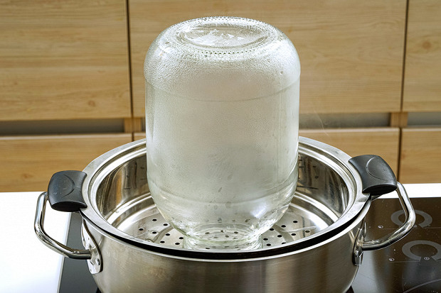 Простерилизуйте банку над паром в течение 20 минут. Это необходимо, иначе продукт может быстро испортиться. Не пытайтесь отделаться только мытьем банки с содой или каким-нибудь еще облегченным вариантом.