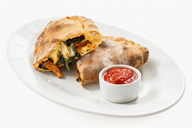 Закрытая пицца кальцоне с грибами и шпинатом
