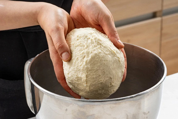 Сформируйте из теста шар и положите в миску, смазанную оливковым маслом. Накройте миску пленкой или влажным полотенцем и оставьте тесто подходить в теплом месте на 1,5–2 часа.