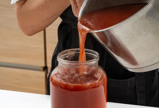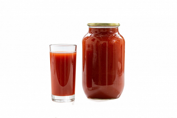 Доведите томатный сок до кипения и варите семь минут. Снимите пену.