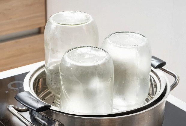 Стерилизуйте банки и крышки над паром в течение 15 минут. Это необходимо делать, если вы собираетесь хранить сок больше трех дней. Если же этот продукт будет храниться недолго, то можно обойтись без стерилизации. Важный нюанс — если у вас небольшая семья и вы, скорее всего, не выпьете за один день трехлитровую банку сока, выбирайте тару поменьше — например, пол-литровые банки.