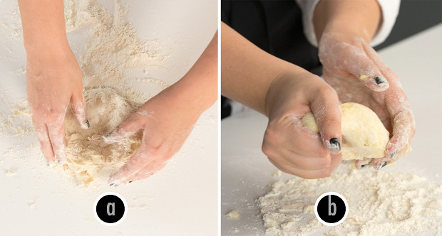 Лилия Байкеева (b): Переложите тесто на стол и вымешивайте его, буквально втирая его в столешницу, пока оно не станет очень упругим. После этого лучше всего убрать тесто на 15 минут под салфетку или под пленку — при комнатной температуре.