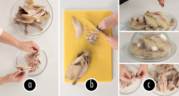 Раиса Агранат (c): Когда бульон готов, я вынимаю курицу из кастрюли, кладу ее в тарелку, посыпаю солью и накрываю крышкой, чтобы она в таком состоянии просаливалась и остывала. Когда курица остынет, ее надо разделать на части.