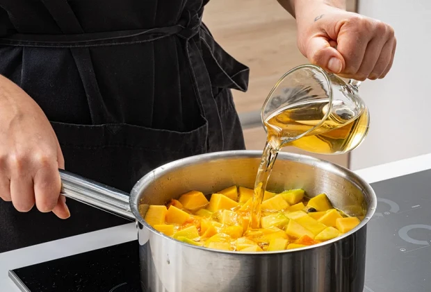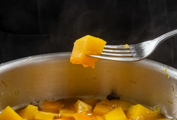 После повторного закипания варите тыкву 15–20 минут. Она должна стать мягкой, но не развалиться.