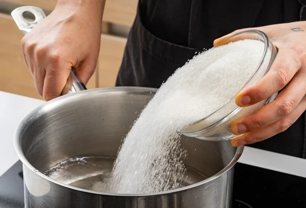 Сварите сироп из 500 мл воды и сахара. Важно в первые минуты, когда вы соедините воду и сахар, сироп не мешать, чтобы он не засахарился, а когда сахар растворится — можете мешать смелее.