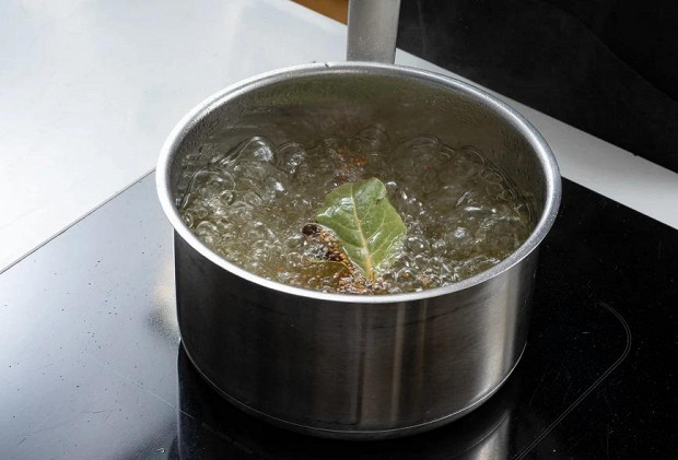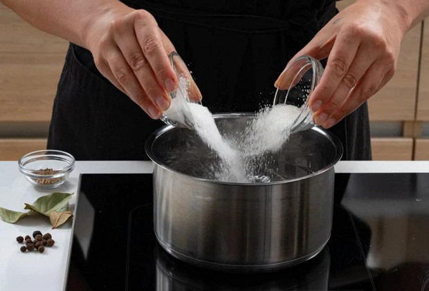 Доведите рассол до кипения и проварите 2 минуты. Затем снимите с огня и остудите.
