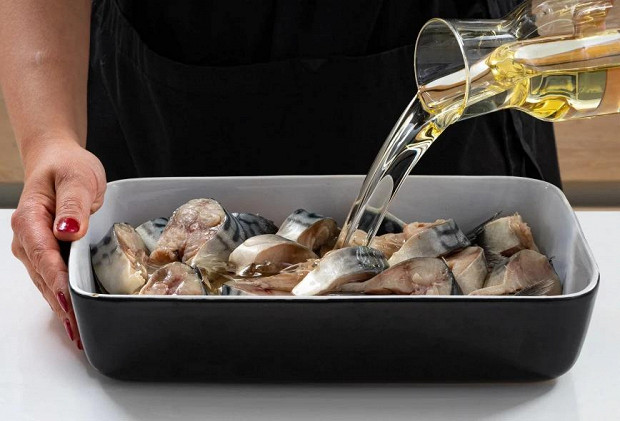 Выложите рыбу в лоток (если используете эмалированный, следите, чтобы на нем не было сколов).