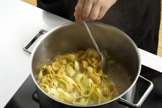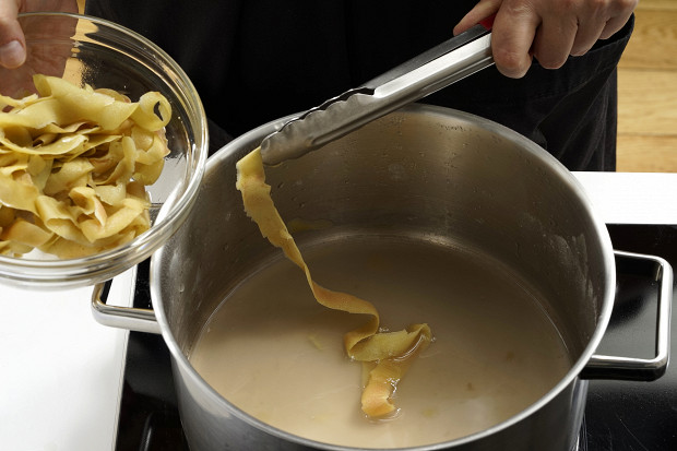 Вытащите яблочную кожуру из воды — она отдала свой вкус, аромат и текстуру и больше вам не понадобится.