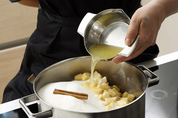 Добавьте к яблокам лимонный сок, палочку корицы и килограмм сахара. А еще тут может оказаться бадьян, гвоздика, кардамон и другие интересные восточные пряности.