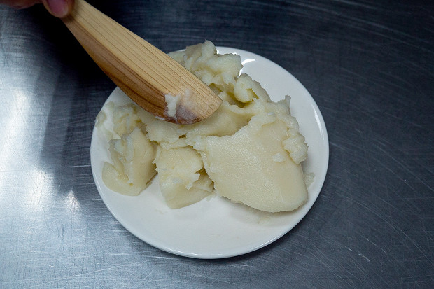 Возьмите 30 грамм пшеничной муки и 150 грамм холодной воды, можно из-под крана. Смешайте все в сотейнике, поставьте его на огонь и держите на небольшом огне, помешивая, чтобы не было комочков. Когда температура достигнет 60 градусов, заварка превратится в клейстер, он-то нам и нужен. Кстати, раньше заварку использовали в качестве клея для обоев.