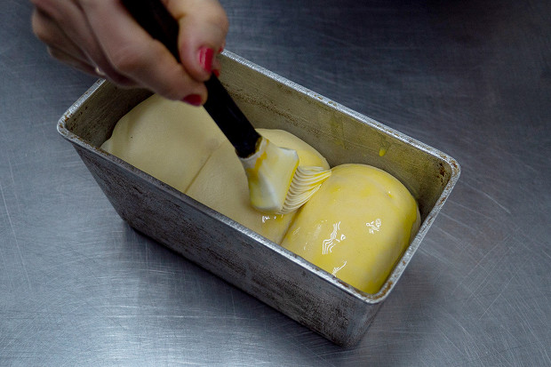 Окончательные пропорции теста зависят от того, какую форму вы хотите придать изделию. Я привожу раскладку для работы с формой для выпечки. Если вы хотите сделать хлеб в виде батона, то надо добавить чуть меньше жидкости, чтобы тесто было более крутым и густым и не расплывалось на противне. При этом надо увеличить время расстойки. Более жидкое тесто ведет к более нежной и хрупкой текстуре, что и нужно нам в случае с японским хлебом».
