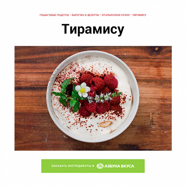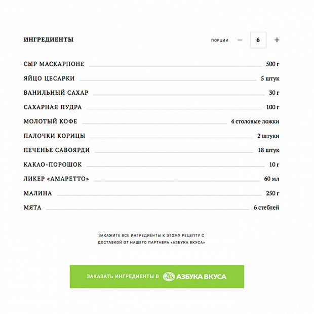На «Еде» появился новый отличный сервис: «Азбука Вкуса» теперь доставляет ингредиенты для наших рецептов. Никаких списков продуктов составлять не надо — все будет собрано автоматически. Сервисом могут воспользоваться жители Москвы и Московской области.