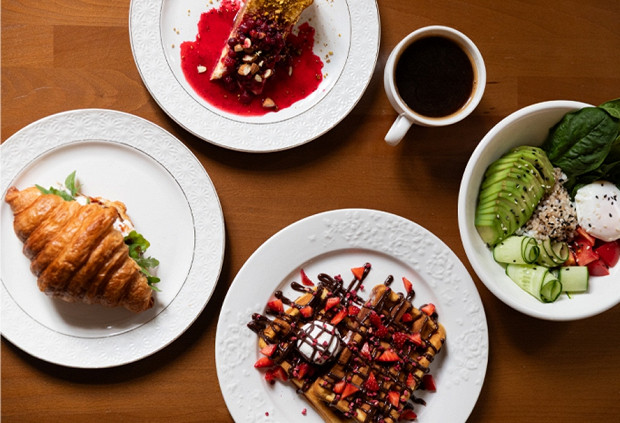 В уютном бистро завтрак для тех, кто по утрам предпочитает углеводы: вафли с орехово-шоколадной пастой и клубникой, чизкейк сан-себастьян из творожного сыра с брусничным соусом, круассан со страчателлой и томатами. Для баланса фестивальное меню предлагает полезный зеленый боул с авокадо, рисом и яйцом пашот.