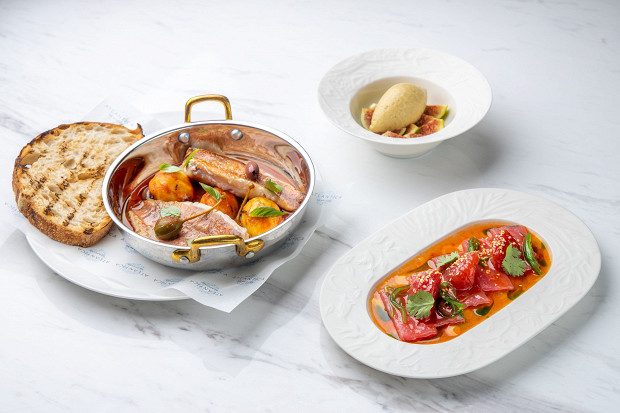 В уютном ресторане домашней итальянской кухни на Дмитровке в сет включили спагетти из тунца, cтейк с каперсами и десерт из инжира. «Наш сет — это итальянское настроение, итальянский дух в каждой детали и долгое итальянское послевкусие, — говорит Александр Челмакин. — Мы скрестили классическую Италию и авторскую подачу, найдя необычные воплощения для знакомых вкусов. Спагетти из тунца — яркое блюдо в нетрадиционном формате. Cочетание горячего стейка и холодного соуса из каперсов раскрывает палитру ароматов каждого элемента. А завершающий сет десерт с инжиром — дань сезонным плодам».
